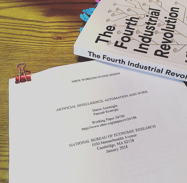- AI, Automation and Work by Daron Acemoglu and Pascual Restrepo, a paper issued on NBER, Jan 2018 (Acemoglu)