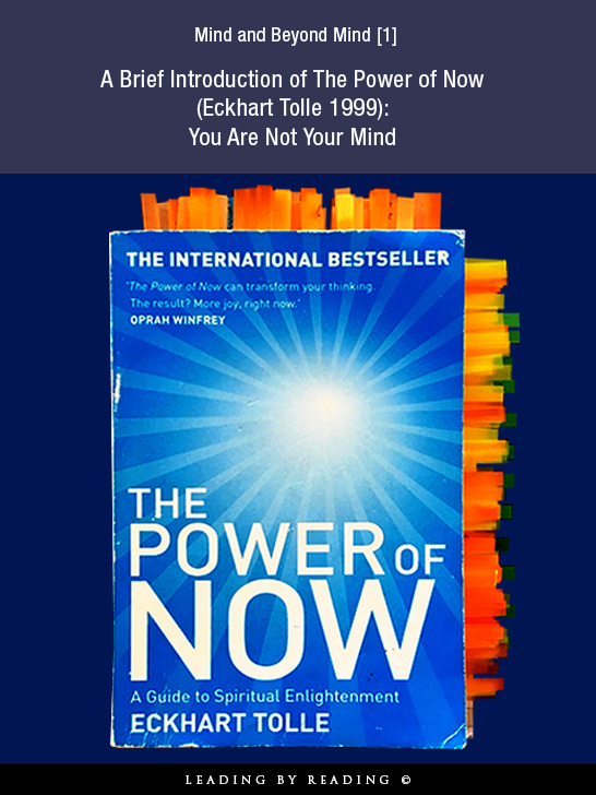 “So when you listen to a thought, you are aware not only of the thought but also of yourself as the witness of the thought. A new dimension of consciousness has come in. As you listen to the thought, you feel a conscious presence – your deeper self – behind or underneath the thought, as it were. The thought then loses its power over you and quickly subside, because you are no longer energizing the mind through identification with it. This is the beginning of the end of involuntary and compulsive thinking.”– Freeing Yourself from Your Mind, Chapter 1. You Are Not Your Mind, THE POWER OF NOW (Eckhart Tolle 1999), p15-6